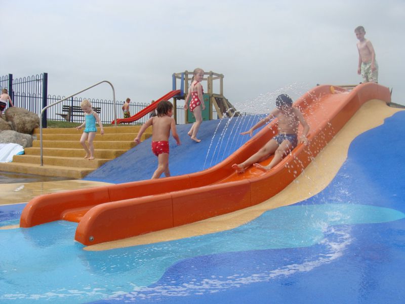 Slide your way down the super long super splash slide! Assembled in sections, this slide is available in a variety of lengths and heights!
