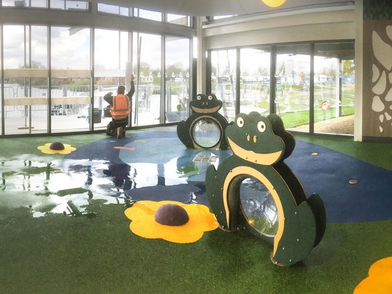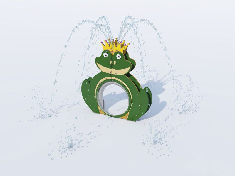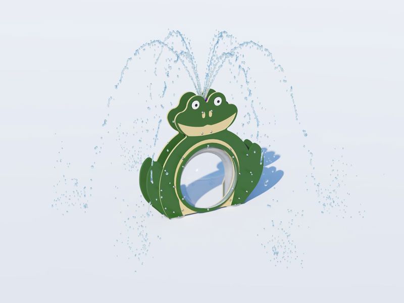 Freddy Frog is a great character to have in the splash pad. Its arched metalwork enables you to crawl under and interact with the perspex dome.