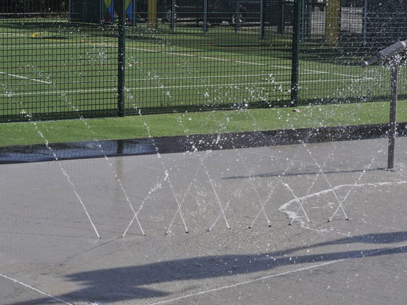 The Split arching water fence has a wide range of play experiances for the children, Crawling underneath or jumping over like a dolphin.