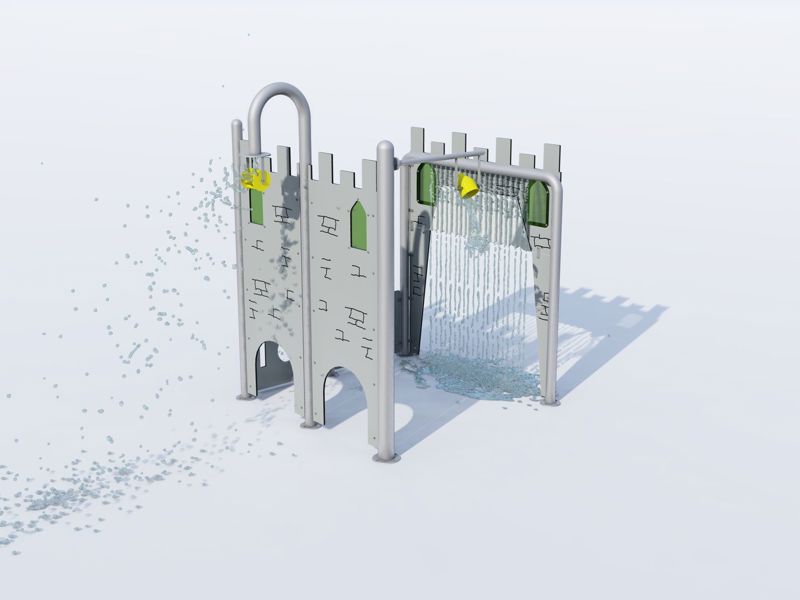 The huge Castle Gatehouse is the entrance to any castle. When activated the Gate rains down shut. Watch out! The tipping bucket could soak you inside! The great themed feature stands above the rest giving the pad the WOW factor.