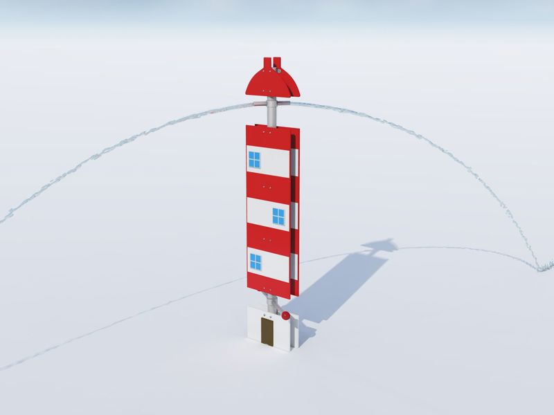 Watch out the Coast is near. Sport the 3m Tall Lighthouse Spray. Turn the handles and spin the Light. Make sure you warn your friends by getting them soaked!