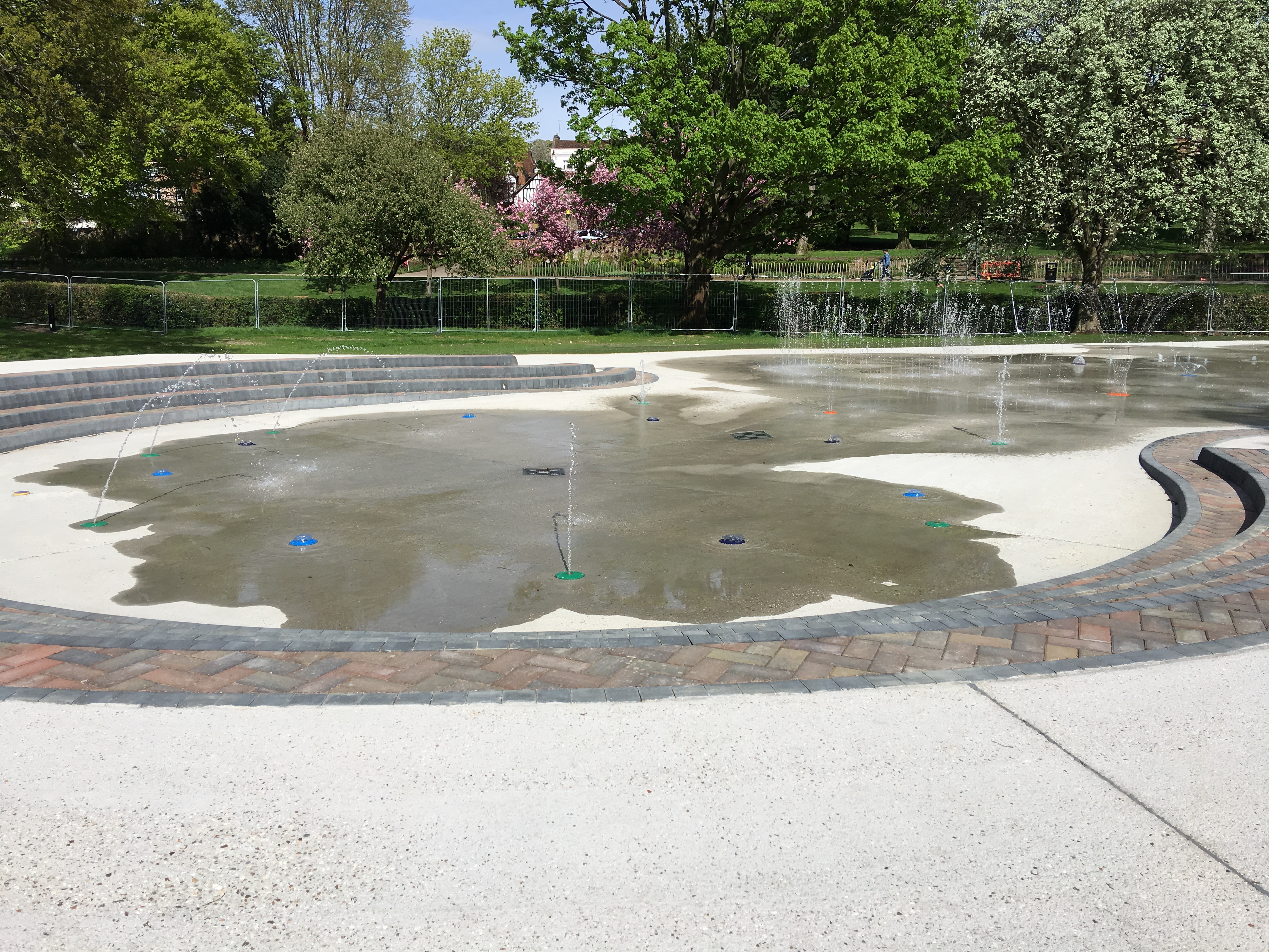 Gadebridge Splash Pad is an interactive, super soaking play area designed for children, featuring a variety of jets with different heights, patterns, and pressures, including a bubbling Gyserino and Water Weaves for exciting water play. The central 6 stepper jets create an engaging game where children control the water flow by activating each nozzle. Water fences add an element of adventure with walls to dart through.