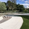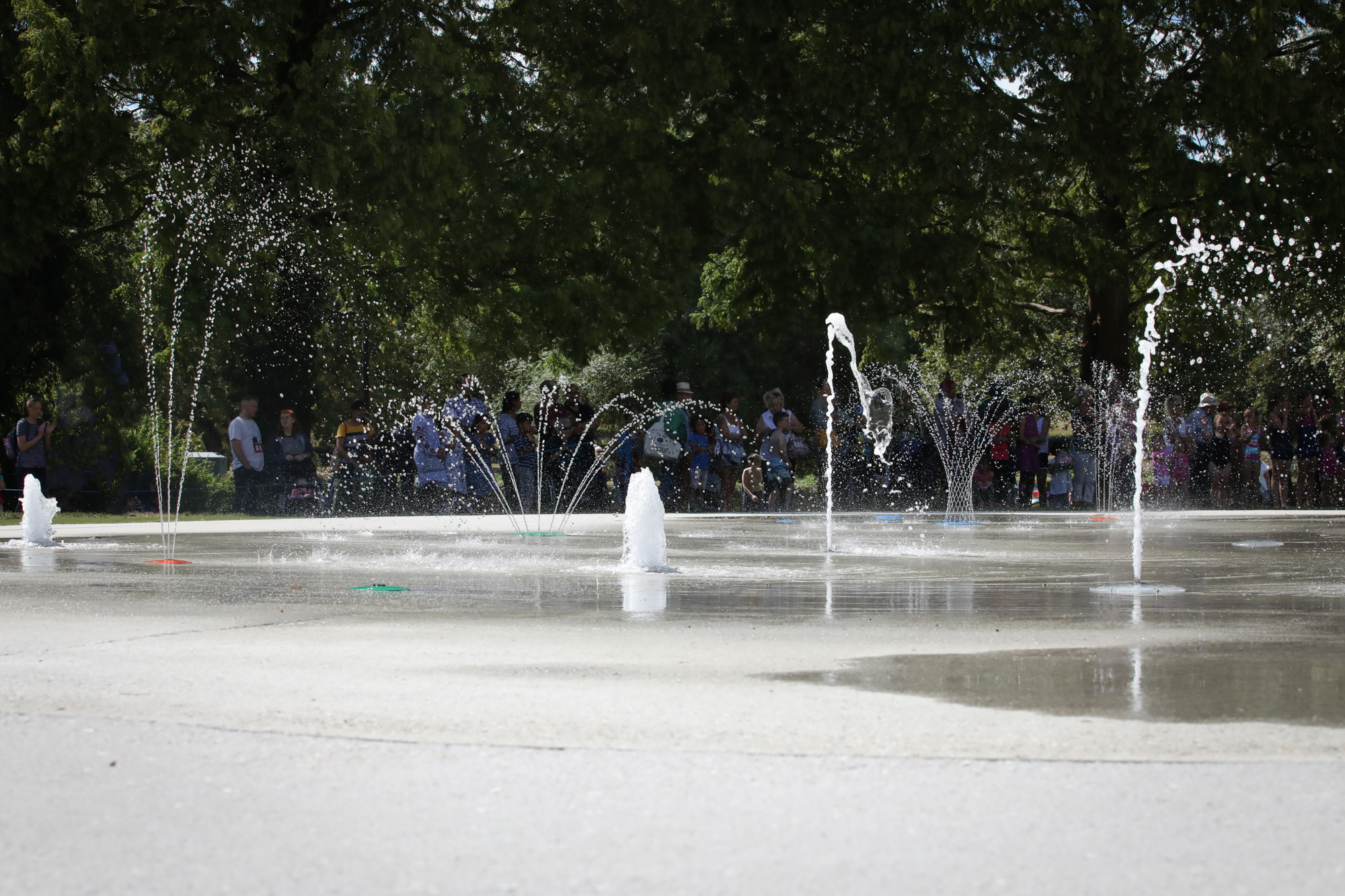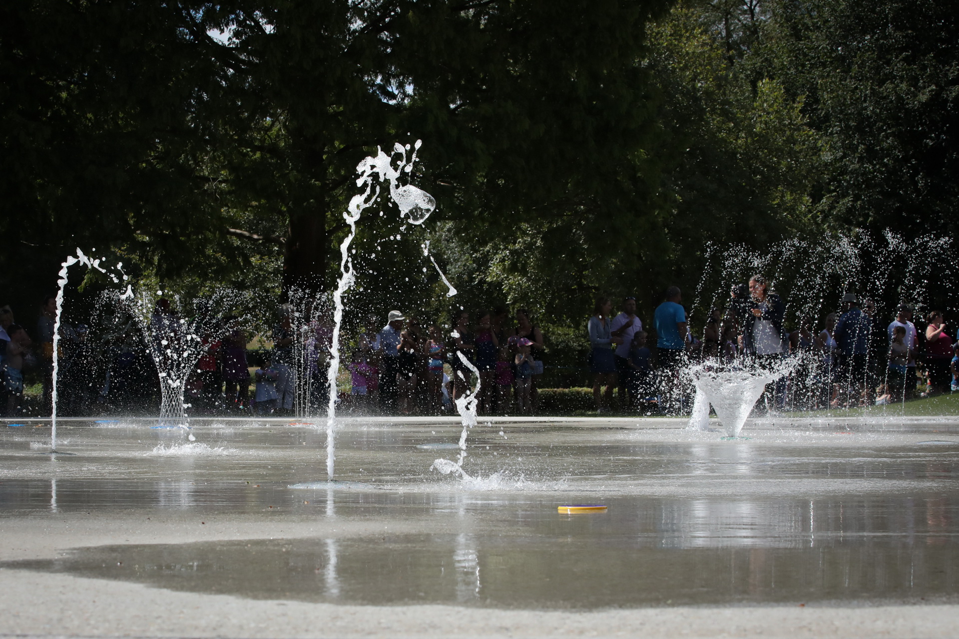 Private events, such as splashpad parties or fountain shows with LED lighting, can be booked for additional revenue. The design thoughtfully integrates the surrounding tranquil environment and local history, using free-form shapes and warm LED lighting. The landscape, lighting, and patterned jets can be programmed for evening fountain displays, creating a magical atmosphere.