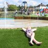 The surrounding area designed for picnic seating also featured variable levels and mounds. This allows parents to sit and safely see across the splashpad, ensuring good visibility. For added aesthetic, we surrounded the concrete with palisades, offering another opportunity for seating and enjoying the splashpad.