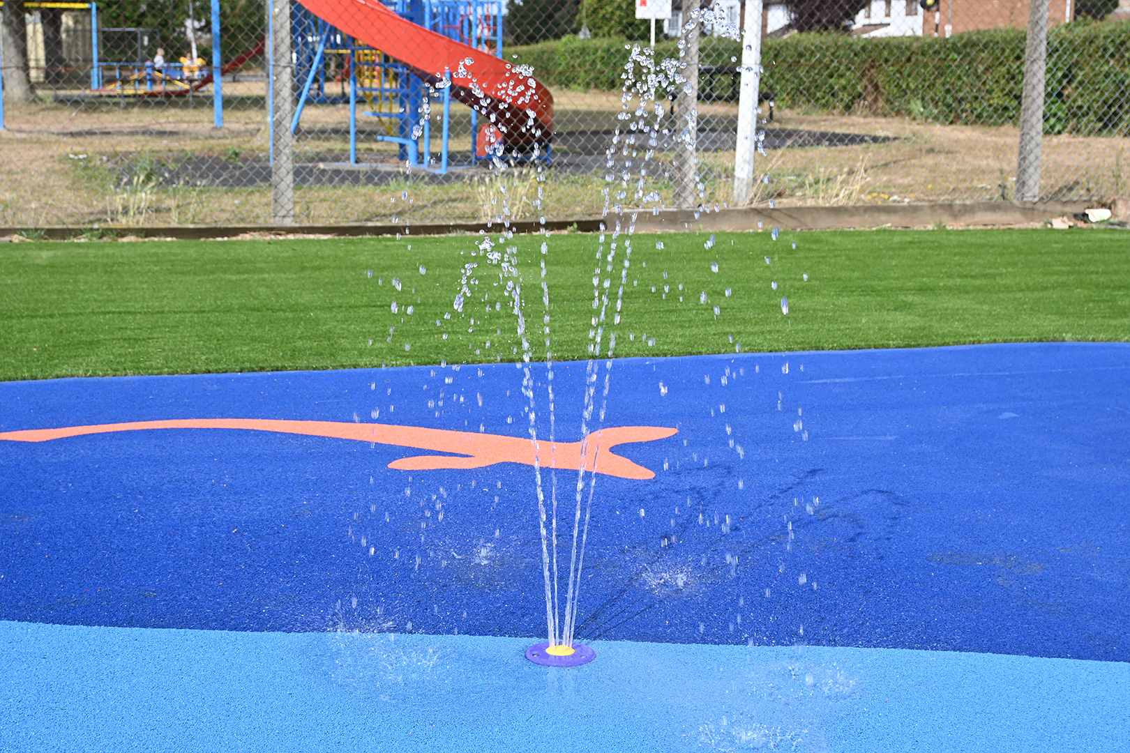 The splash pad itself is situated at the top of the playing fields, approximately the length of two football pitches from the car park. To facilitate construction access and minimise damage to the playing fields, we installed a temporary access road leading directly to the site.