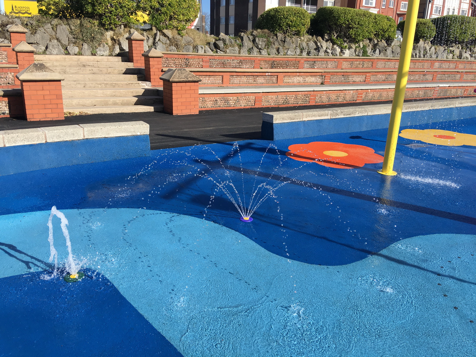 Our bespoke design for the St Annes splash pad was thoughtfully developed to complement the site's unique shape, layout, and historic character. Taking inspiration from the vibrant surrounding gardens, we designed a visually striking wet pour safety surface that enhances both aesthetics and interactive play.