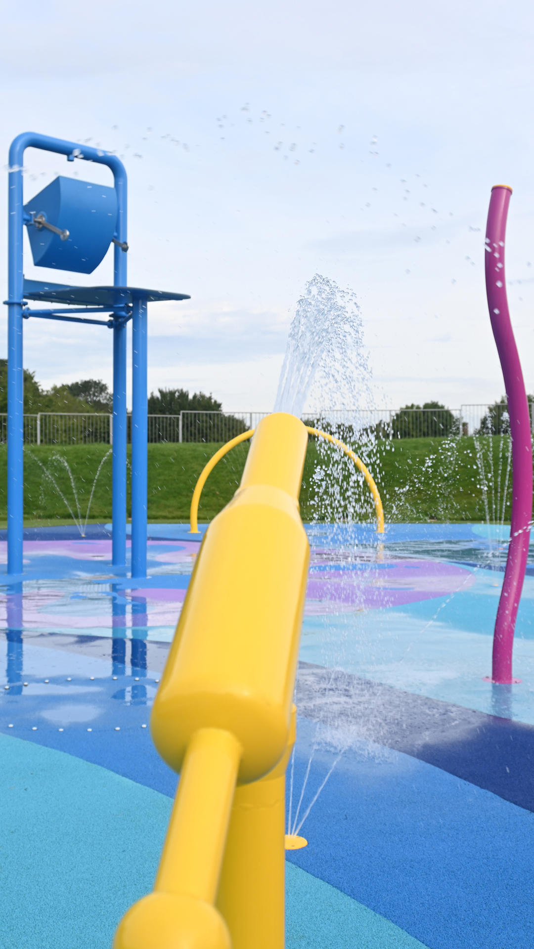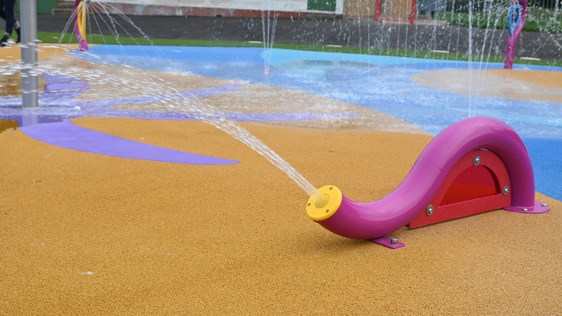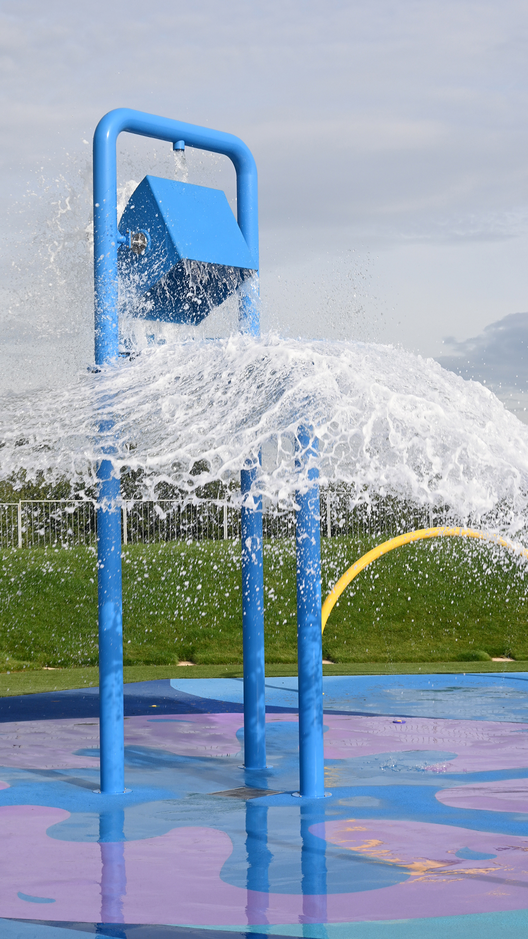 All the features fit the modern theme, with shapes, curves, and colours to complement the overall design. Some features have a ‘bead blast’ finish, while others are powder-coated. Our range of features, from inground features to the Super Soaker, provides play value for all ages.