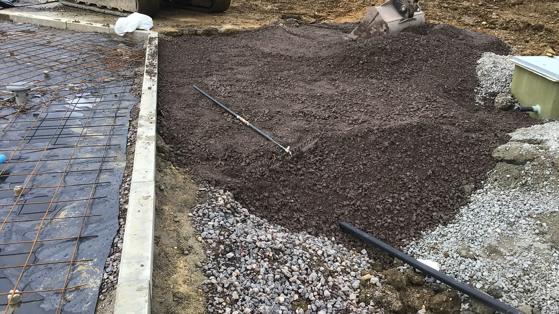 Excavations took place for the two main below-ground tanks. During excavation, an old concrete sewer pipe was discovered that had not been identified in the pre-construction information. This triggered a design change that led to the relocation of the tanks, and the pipework was adapted to suit.