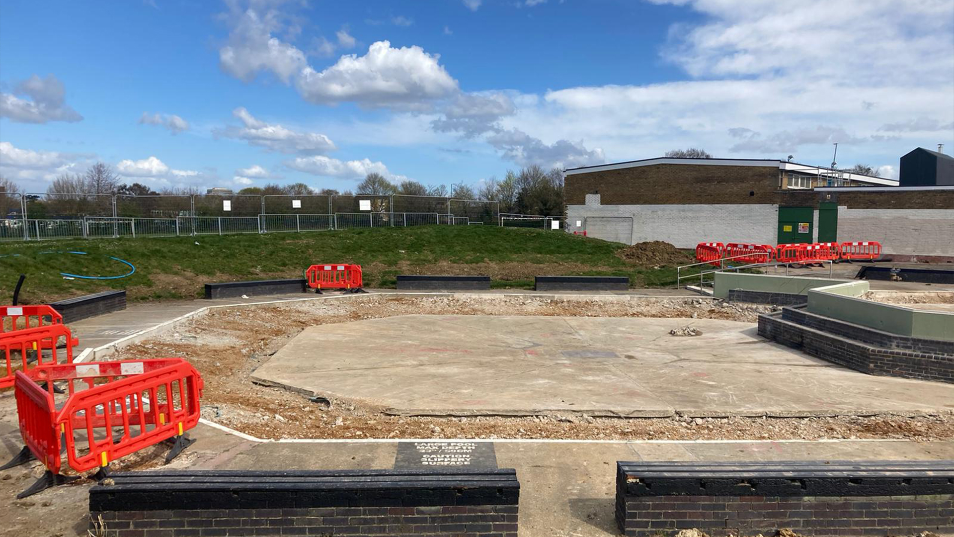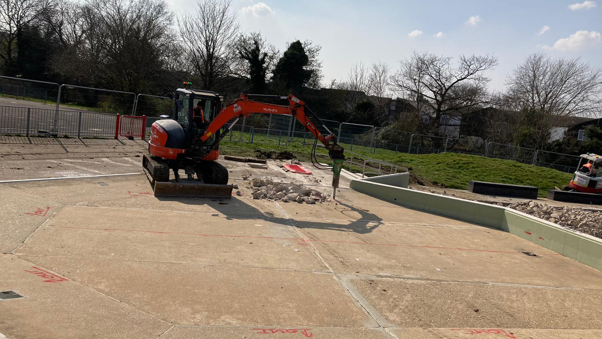 The construction phase of the project began in April 2022, with part of the existing paddling pool being removed and new main electrical, water, and waste connections installed at the required locations.