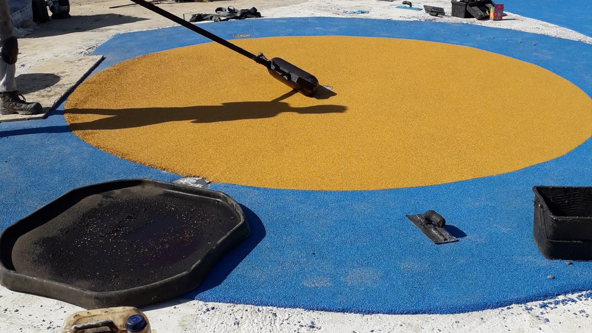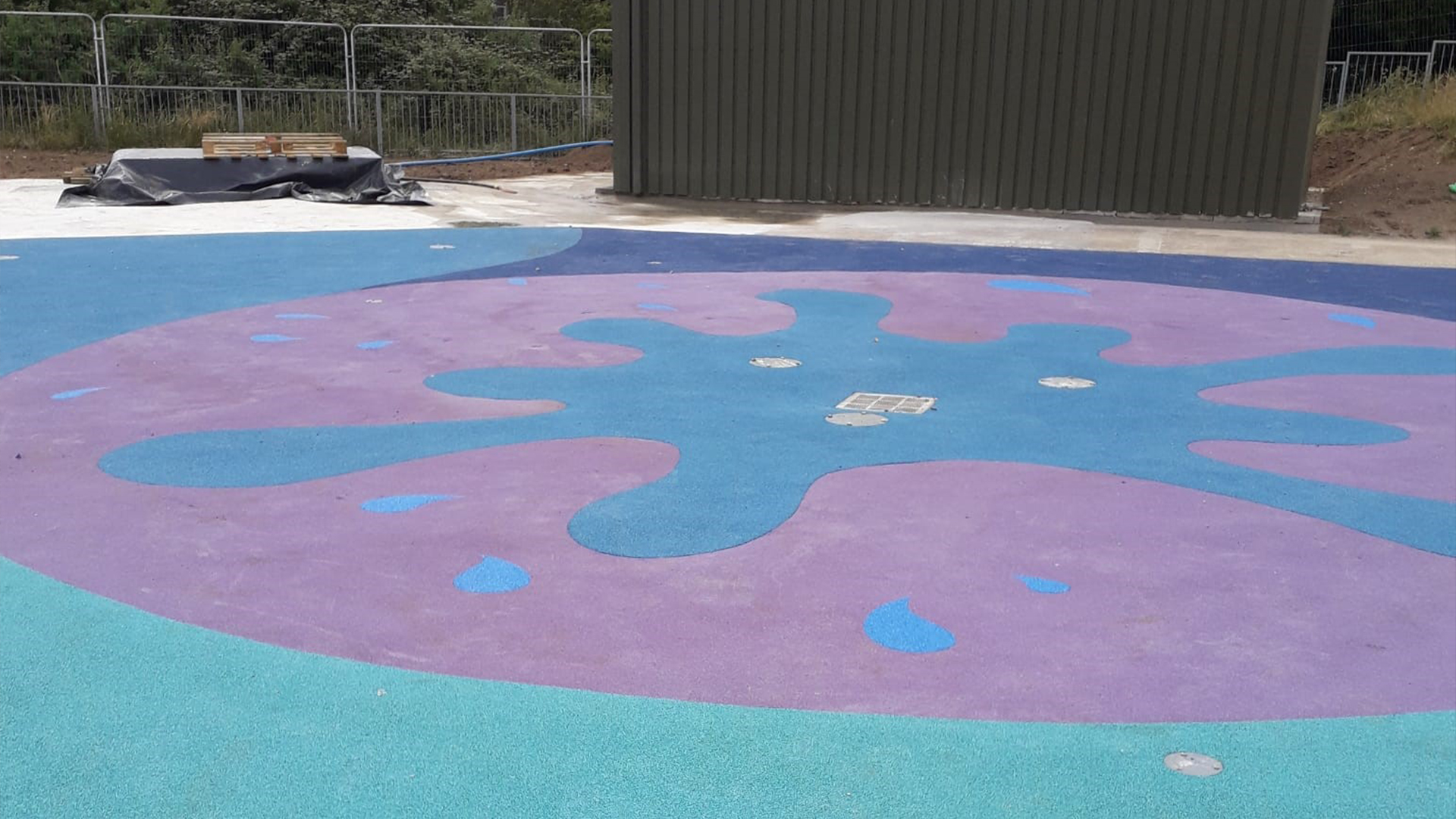 A 15mm wetpour rubber crumb was used as the finished surface, laid to include themed graphics. This created a bright, playful area with a non-slip, non-abrasive finish.