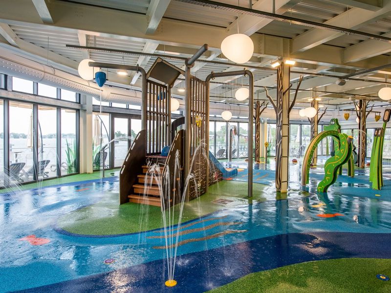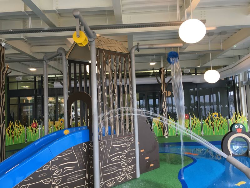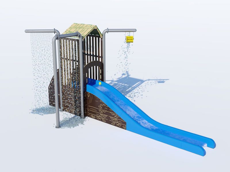 Slide your way down the super long super splash slide! This themed tower unit has multiple play value from the 4 main water features to sliding down the water slide.