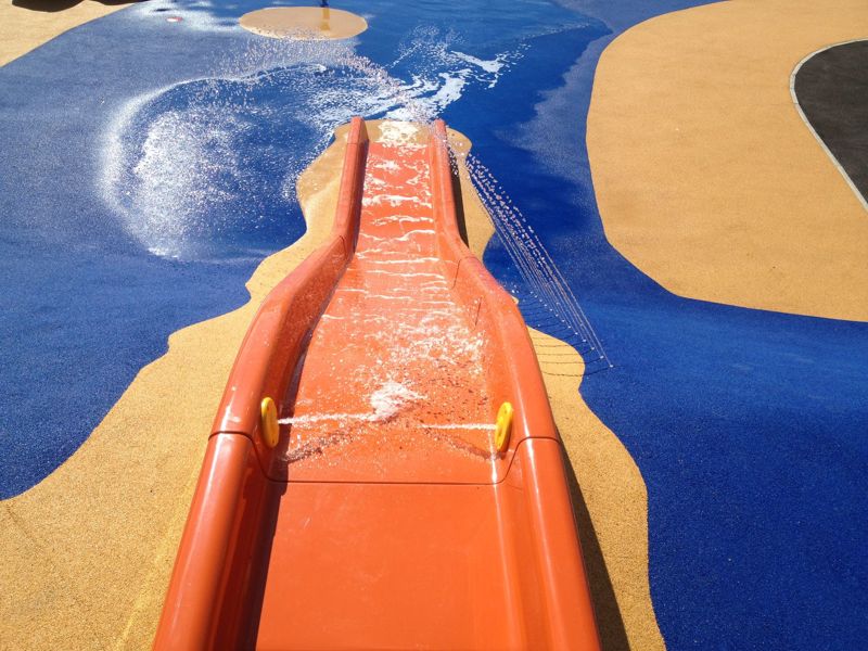 Slide your way down the super long super splash slide! Assembled in sections, this slide is available in a variety of lengths and heights!