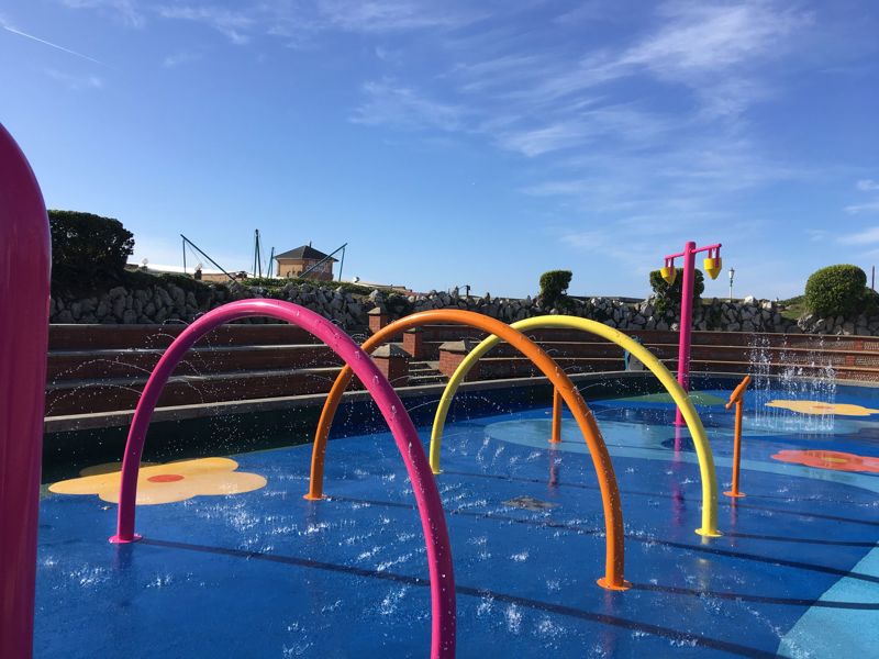 The arching Water Rainbow has a number of nozzles that create arching streams of water to run through. Add multiple arch’s together for an exciting tunnel effect.