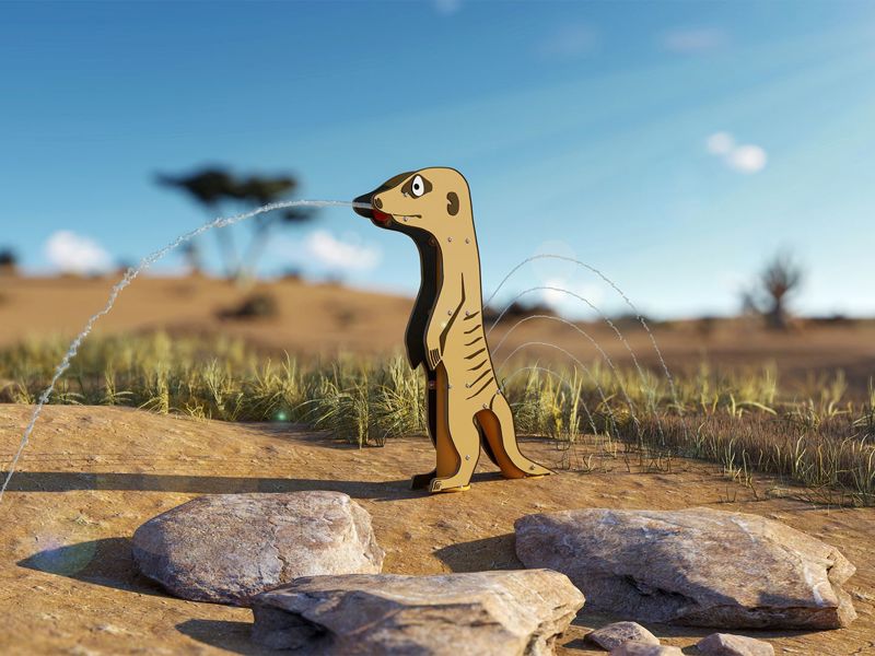 Merlin Meerkat is standing 2m Tall looking out for the next person to soak! The popular animal has 2 elements, a water rail and a hydro blast.