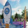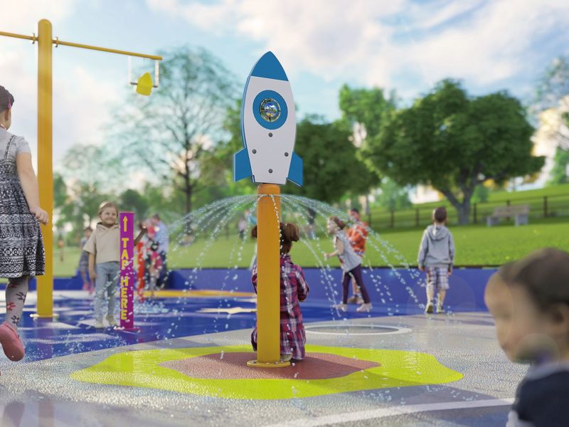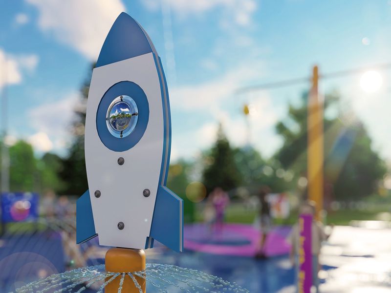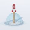 Blast off! Press the Tap Tap Activators and begin the launch! The umbrella water sprays in a full circle from the base of the rocket. Sit underneath the dome for an all new experience.