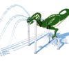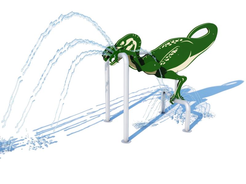 Run! the Velociraptor has jumped on the pipes and is biting through. Escape the Velociraptor before the pipe bursts. a number of arching streams spray out from the pipe.