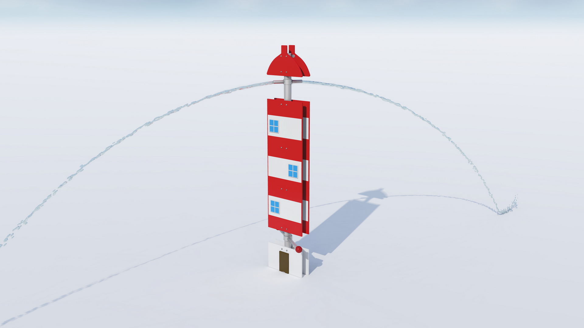 Watch out the Coast is near. Sport the 3m Tall Lighthouse Spray. Turn the handles and spin the Light. Make sure you warn your friends by getting them soaked!