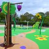 We’re excited to present the revitalized splash pad, offering an engaging experience for all ages. The centrepiece is a dynamic racecourse track, activated by a central post, featuring challenges like Water Fence Sprays, in-ground features, and Hedge Hurdles with sprays. Children can leap through these hurdles, surrounded by vibrant flower panels, and race to the finish line under the Sprinkle Shower. After the race, visitors can climb the Grandstand podium for a photo opportunity, with a stunning view of the Jumping Horse, a bespoke structure with arching water sprays and the park’s name engraved.