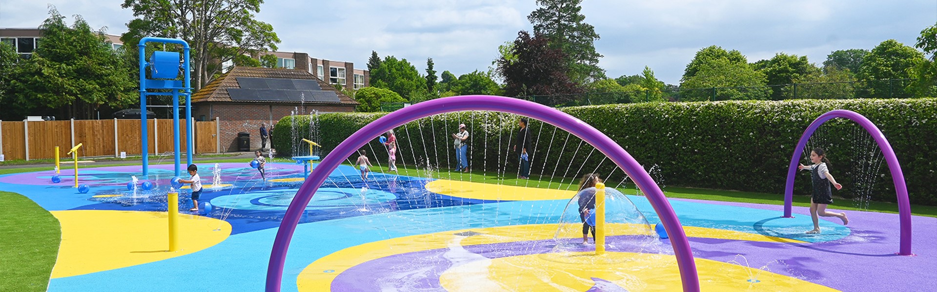 The Churchfields Splash Pad is a bespoke, inclusive water play area thoughtfully designed to cater to visitors of all ages and abilities. The layout encourages fluid movement through three distinct play zones—Toddler, Interactive, and Junior—each offering unique features that balance excitement with accessibility.