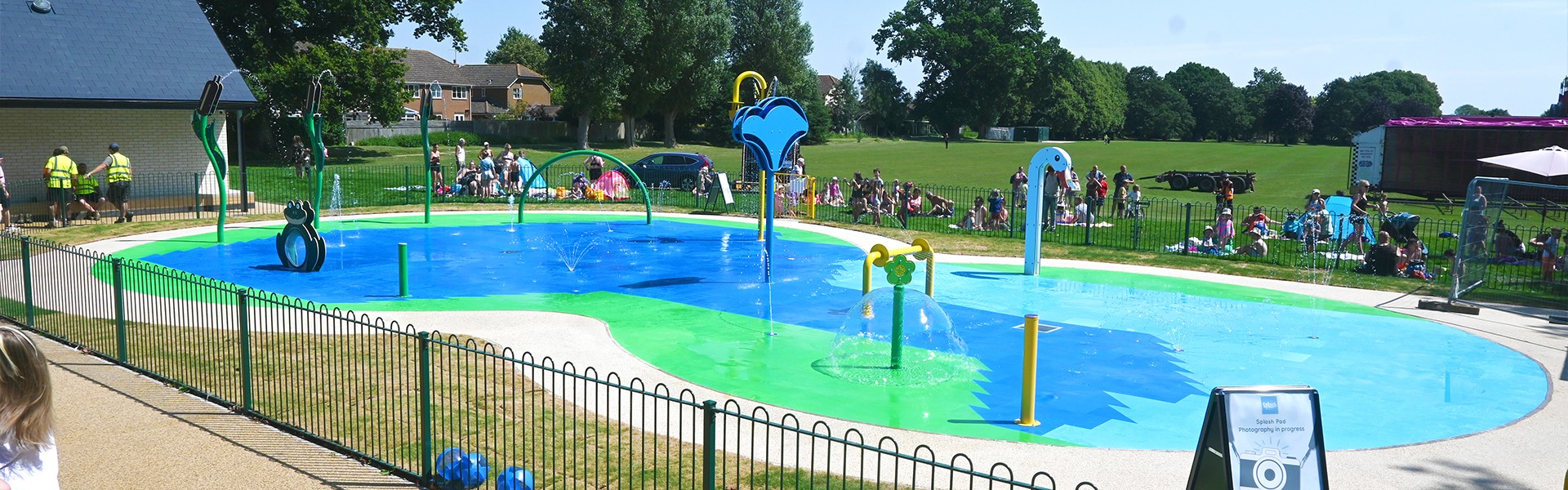 We crafted a bespoke splash zone design that seamlessly integrates with the pavilion and surrounding green spaces. The design emphasizes nature-inspired features and vibrant colours, using shades of green and blue to complement the environment. The splash zone includes a variety of dynamic, interactive water features, such as arching streams, multi-stream fountains, bubbling jets, and shimmering water domes. These features are designed to engage users of all ages, including toddler-friendly options like Freddy Frog, a crawl-through feature with a Perspex dome. All equipment is UK-manufactured and crafted from durable 316-grade stainless steel with vibrant powder coatings. To optimize water usage, the features are individually controlled via solenoids for precise adjustments. The surface is finished with GomyFloor Tiles, designed specifically for aquatic environments, which create a visually appealing and functional play area. Sensory and educational panels further enhance the experience, with butterfly, weather, and frog puzzle themes. These panels, made from UV-resistant HDPE materials, add an interactive and educational element for children. The result is a splash pad that encourages exploration, engagement, and fun, while harmonizing with the natural setting and the pavilion.