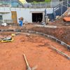 Before our work, the site was a raised area next to the existing outdoor pools. To accommodate the new splash pad, a dedicated plant room was required to house the recirculation system. The area beneath the outdoor seating was selected as the best location for this facility.