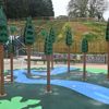 Throughout the forest, a river-themed wetpour surface enhances engagement, featuring stepping stones and playful pathways that invite children to hop, skip, and jump through the area, sparking creativity and imaginative play.