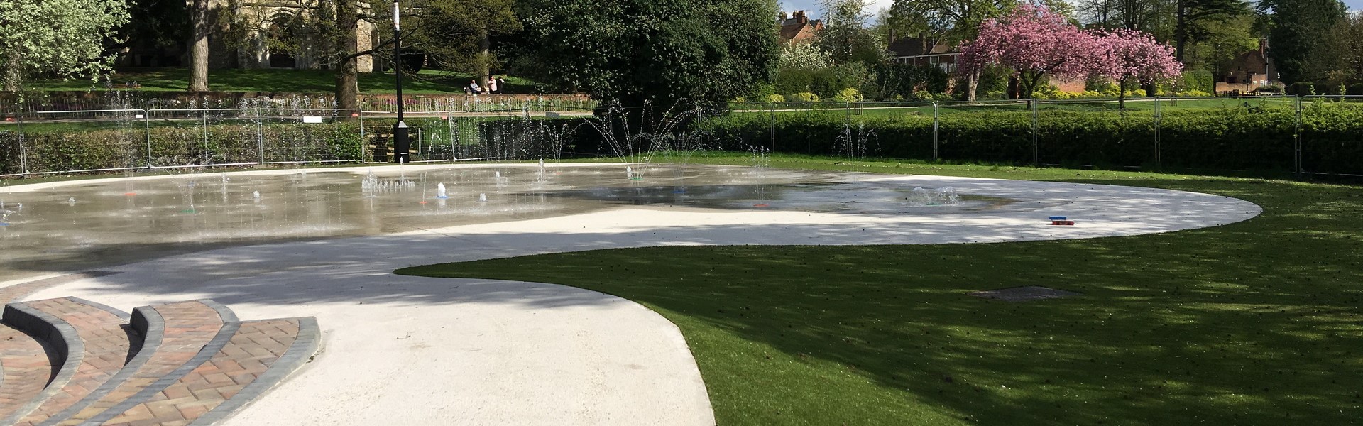 Gadebridge Splash Pad is an interactive, super soaking play area designed for children, featuring a variety of jets with different heights, patterns, and pressures, including a bubbling Gyserino and Water Weaves for exciting water play. The central 6 stepper jets create an engaging game where children control the water flow by activating each nozzle. Water fences add an element of adventure with walls to dart through.