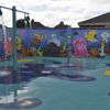 Surrounding the mural is a selection of our Ecosplash inground water features, chosen for their low-profile design and interactive play value. These features offer varied water effects that encourage exploration and movement.