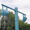 The main focal point of the splash pad is the Twin Tipper—a dramatic water element that splashes down without warning, delivering a burst of excitement and laughter for children using the space. Its element of surprise adds dynamic energy to the play area and keeps users coming back for more.