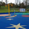 A paddle zone was included within the design to pay tribute to the old paddling pool, alongside a mixture of space-themed features and in-ground jets. Our themed wet pour safety surfacing completes the design, featuring moons, stars, craters, and planets for an authentic space experience.