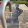 Water flows from the iconic Whoosh shower head, cascading down the rill and into two interactive weir gates. These gates can be opened and closed by children, allowing them to control the flow, build up water, and engage in experiential learning through play.